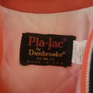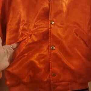 Vintage 1980s Mens Orange Satin Coat Pla Jac Size M USA Made Sportswear Bomber Jacket