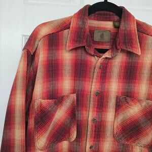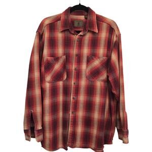 Vtg Men’s Cotton Ombre Plaid Flannel Shirt Red Fade L Cabincore Outdoor Workwear