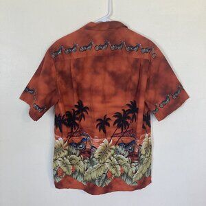 Vtg Mens Hawaiian Shirt Pacific Legend Apparel Cotton Motorcycle Large Orange