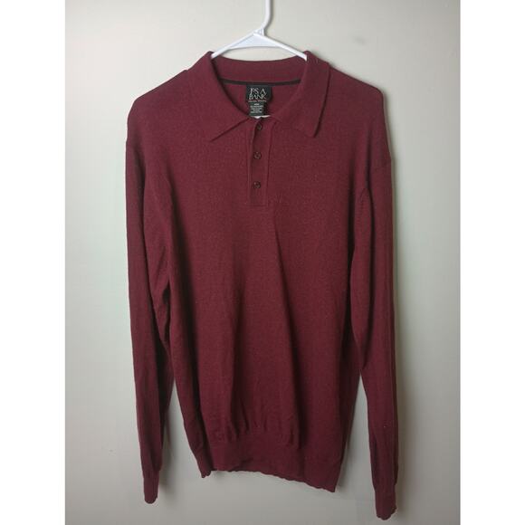 Vtg Men's Merino Wool Maroon Polo Collar Sweater Jos A Bank Office Size XXL