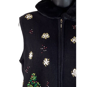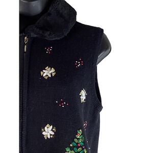 Vtg Mercer Street Studio Womens Sweater Vest Black ugly Christmas Petites PXL