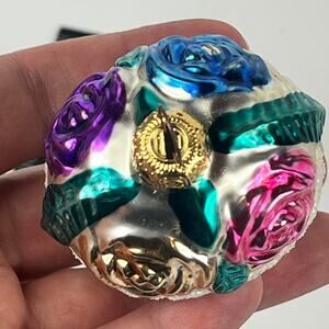 Title: Vtg Molded Mercury Glass Christmas Ornament Colored Roses Basket West Germany Mouth Blown
