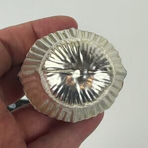 Keywords: antique tabletop feather tree tradition hand-crafted mouth-blown hanging glitter accents indents Blown Glass Orb Tree Silver Half Dome Ball Bauble Unique Rare HTF Hard to Find Deadstock Vintage MCM Mid Centry Unique Gift decoration delicate whimsical handcrafted collectible elegant timeless artistic festive giftable Reflector Ornaments