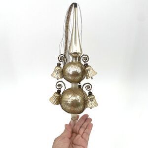 Vtg Mercury Glass Christmas Tree Topper Wire Wrapped Bells Tassel Gold Tone 11.5