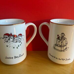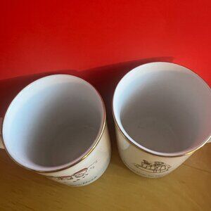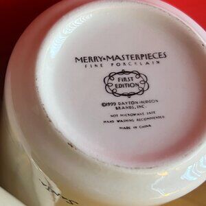 Vtg Merry-Masterpieces Fine Porcelain Set of 2 Gold Rimmed Mugs First Edition