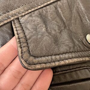 * Pre-owned. Some distressing and discoloration to the leather. Perfectly broken in! No rips or holes