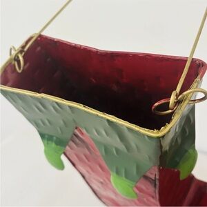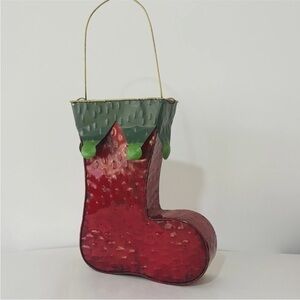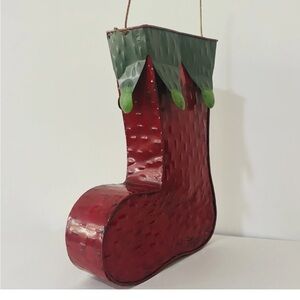 Vtg Metal Hanging Christmas Stocking Elf’s Boot Basket Decor Rustic Farmhouse