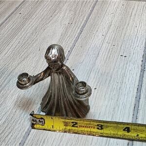 Vtg Pewter Metal Silver Angel Choir Girl Mini Candle Holder Italy Confirmation Candle Holiday Christmas Decorations Religious