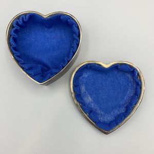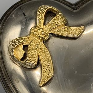 Vtg Metal Silver Toned Heart Trinket Box Blue Lining Jewely Box Gold Tone Bow