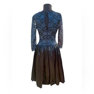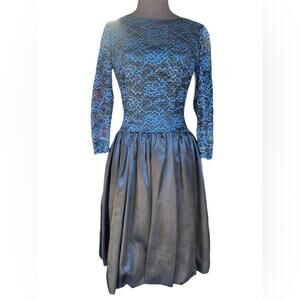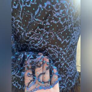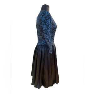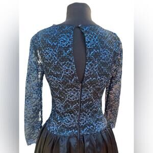 Vtg Metallic Lace Sheer Sleeve Drop Waist Full Skirt Regency Modest Dress S