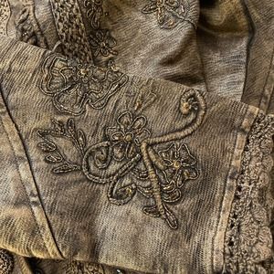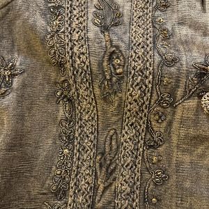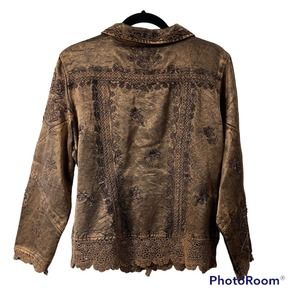 Vtg Metallic Medium Embroidered Crochet Lace Boho Flashback Blazer Jacket Women