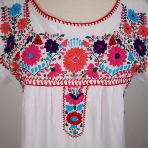 Vtg Mexican Embroidered Floral Caftan Hippie Dress Beach Cover Up Boho Prairie