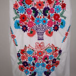 Vintage Mexican White Embroidered Floral Basket Caftan...