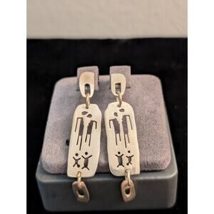Vtg Mexican Sterling Figure Family Signed FF Mexico 925 Dangling Post Earrings