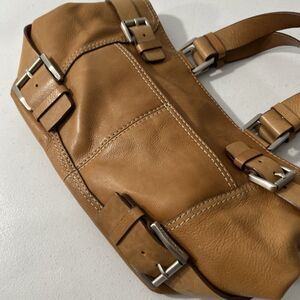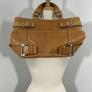Vtg Michael Kors Purse Womens Handbag Tan Cognac Leather Top Handle Buckle Y2K