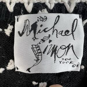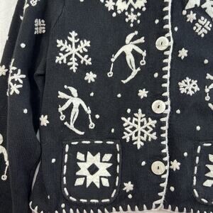 Vtg Michael Simon NYC Sz L Cardigan Sweater Snowflake Ski Black Embroidered 1995
