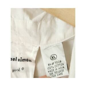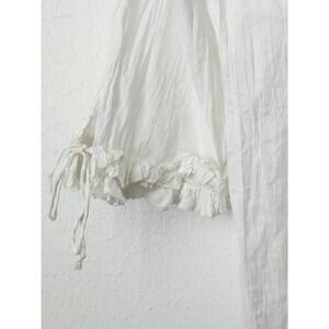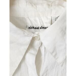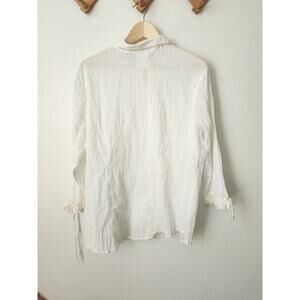 Vtg Michael Simon womens white crinkle ruffle tie cuff button up top XL