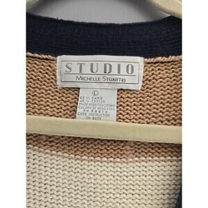 Vtg Michelle Stuart Crest Striped Dark Academia Cardigan Sweater Womans Large. Sweater does have some staining, pictured. Pre-owned
