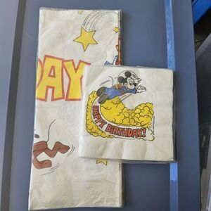 Vtg Mickey Mouse Birthday Paper Tablecloth & Napkins Astronaut Outer space Star