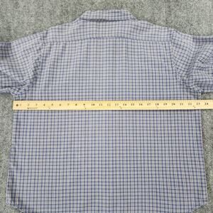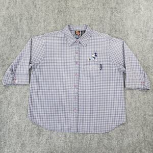 Vtg Mickey Unlimited Top Womens XL Blue Plaid 3/4 Sleeve Embroidered Button Up