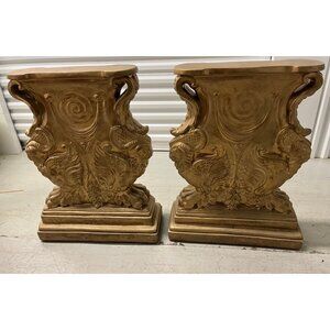 Vtg Mid 20th Century Plaster Gold Leaf Flying Gryphon Ornate Pedestals For Table