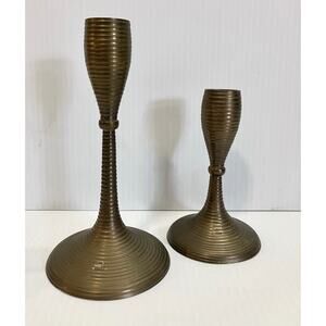 Vtg Mid Century Brass Candlestick Holders Ribbed Texture Goblet Pair 7” & 5”