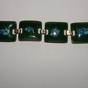 Vtg. Mid Century Enamel Painted Panel Bracelet