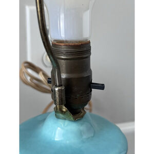 Vtg Mid Century Robins Egg Blue Ceramic Ginger Jar & Brass Base Table Lamp