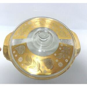 Vtg Mid-Century 22k Gold Leaf COVERED 2QT CASSEROLE DISH & STAND Fire King GVC!