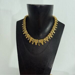 Vtg Mid-Century Machine Art Heavy Gold Tone Necklace Numbered Spiky Link Chain