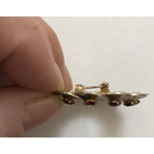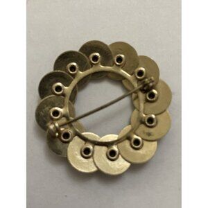 Vtg Mid-Century Red Rhinestone Brooch Circle Xmas Wreath Riveted Faux Garnets