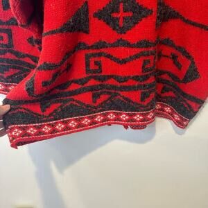 Vtg Midnight Blues Cardigan Sweater Aztec Tribal Sz Medium Red Gray Southwest