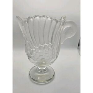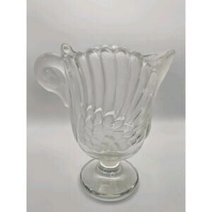 The Vtg Mikasa Walther Crystal SWAN Pitcher is a vintage piece made in Germany, featuring a unique swan pattern on clear frosted glass. This contemporary style pitcher has a capacity of 22 ounces and is easy to fill with its oval shape and decorative handles. Crafted with elegant glass production style, this pitcher is a beautiful addition to any home decor, perfect for serving drinks in style. Hand wash only to preserve its matte finish and intricate details, this Mikasa pitcher exudes a touch of sophistication and artistry.