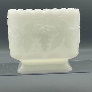Vtg Milk Glass Footed Pedestal Candy Square Bowl Planter Grape Leaf Grannycore