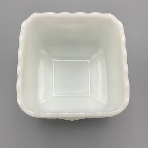 Vintage White Milk Glass Grape Leaf Square Footed Dish
