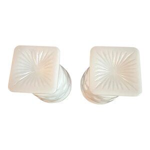 Elegant milk glass goblets with a diamond and thumbprint pattern. Ideal for display or functional use, adding timeless charm to any collection.