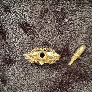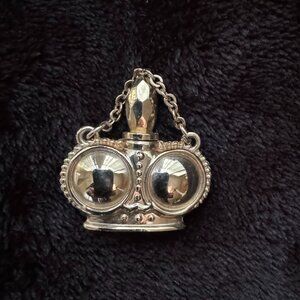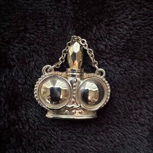 Vtg Mini Crown Rhinestone Perfume Bottle Charm with Dauber, Chain