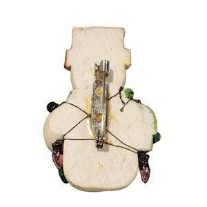 Vtg Mini Snowman pin brooch flowerpot hat scarf wrapped in lights
