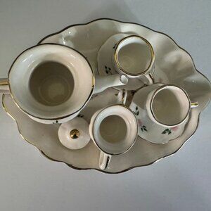 In Very Good Condition- Spout on Teapot was glued. All other pieces in Excellent Condition with no chips