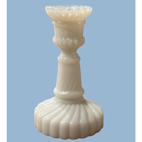 Vtg Miniature White Opaline Milk Glass Candle Stick