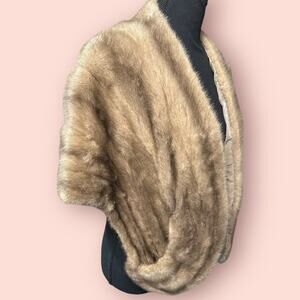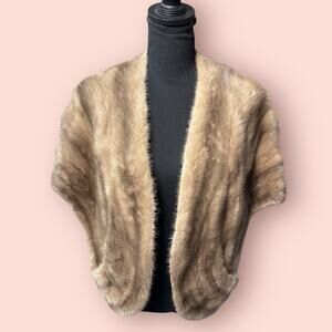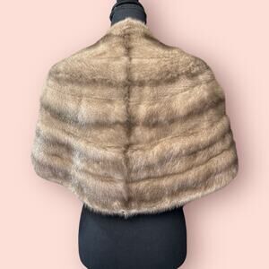 Vtg Mink Fur Wrap Connected Sleeve Coat Jacket Shawl Cape Shrug Bolero Bridal
