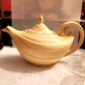 Vtg. Mint 1960’s Hall Aladdin 6 Cup Yellow Ceramic Teapot Gold Trim Made in USA