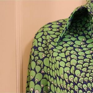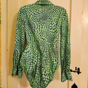 Bright green/Blue Peacock Print Blouse Bodysuit Sz.Small. it is not tight