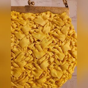 Vtg. Mint '60's Morris Moskowitz Yellow Crocheted Satin Gold Frame Chain Handbag