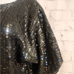 Vintage Mint w/Tags "Cee Cee Brand" Black,Blue,Pink Silk Lined Sequin Tunic Top Sz.M
