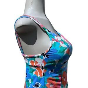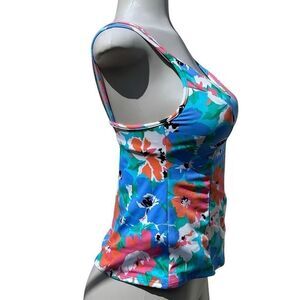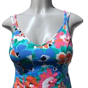 Vtg Miraclesuit Swim Tankini Top Size 8 Multicolor Pastel Floral Double Strap