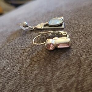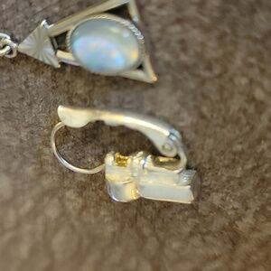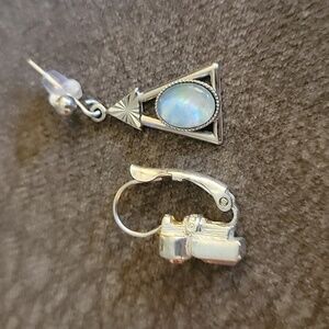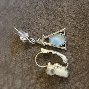 Vtg Mismatched Art Deco Atomic Sterling Leverback and Triangle Opal Earrings