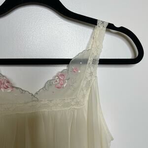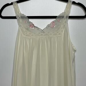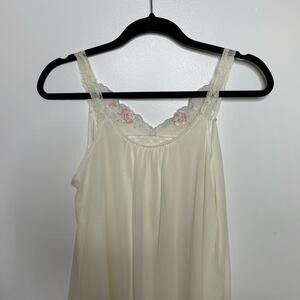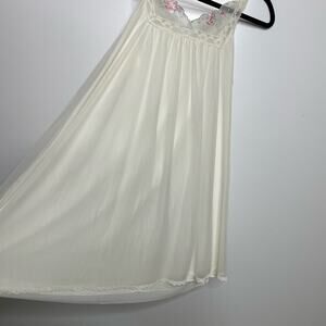 Miss Elaine Vintage Nightgown Embroidered Floral Lace Trim Sleeveless Cream White M