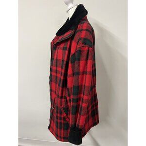 Vtg Miss New Yorker Women’s large Red Plaid Oversized Wool Blend Tartan Coat