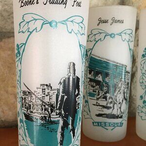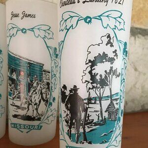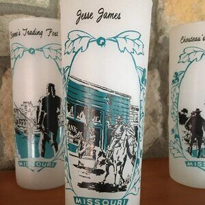 Vintage Missouri BARWARE Frosted Glass Tumblers Cowboy Western Jesse James SET OF 3